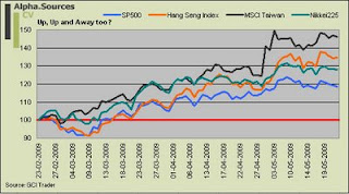 Speaking a language most investors can understand Bloomberg reports that a composite index constructed by ABN Ambro where the Euro, Yen, and USD are used to buy Turkish Lira, Brazilian Real, the Forint etc has so far earned an annualized 196 percent from March 2 to April 10. Such kind of rapid reversal of fundamentals can only be underpinned by a very strong dose of positive sentiment as the one we have been witnessing with all the talk about green shoots and second derivatives. As Macro Man points out the most recent survey on Global Funds Managers from Bank of America and Merril Lynch sported the biggest degree of optimism since 2004 and, naturally, a substantial re-allocation of assets towards emerging markets.