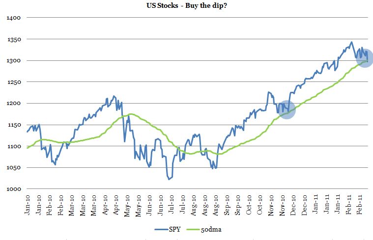 Which way the tide will turn at the Fed is not a trivial question. There are plenty of signs that after the SP500 having tested the 1350 level, and failed, the market is running on the evaporating fumes of QE2. As one of my many market spies noted today: