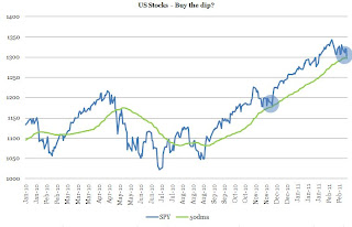 (...) it is definitely possible that the market will discount the end of QE2 ahead of time this time around. This is what happened in Japan too - the market began to rally as soon as their QE2 was announced (since it had rallied smartly on QE1) , but halfway through the implementation the Nikkei began to fall, ultimately losing 45% from the interim peak and ending below the level of the day QE2 was announced. Mind, I'm not saying it will play out in the exact same manner, this is just to point out that there can be leads and lags between QE and its effect on the stock market - the QE1 experience is not necessarily a road map that needs to be repeated.